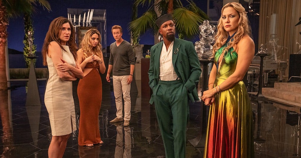 Norton is hilarious and equally perfect as tech billionaire Miles Bron. Janelle Monae, who was great in 2016's Moonlight, gives another great performance in dual roles. Kate Hudson, who I will always associate with Almost Famous and her portrayal of Penny Lane, really jumped out to me, playing a ridiculous socialite/fashion designer/former model. It's a very broad, comedic performance, but that doesn't fail to command our attention and interest.