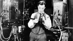 He falls asleep in the projection booth, dreaming about his girl and his frustrated love. His doppelganger extracts itself from his sleeping body … and walks down the aisle of the darkened theatre to climb up on the stage and into the society-crook melodrama being projected on the screen … There's no explanation for this or any other lapsus naturalis in this 1924 film which makes later efforts by Dalí, Buñuel and Cocteau look pedestrian and a bit timid. They felt obliged to clarify matters by a symbolistic apparatus. Keaton never rose—or sunk—to that.