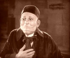 It would certainly be remarkable in our time, so doing that in the 1920s is even more striking. Rather than being this quasi-romantic figure, you do get this sense of the horror associated with him and that he's a part of that Universal collection of monsters. The most distracting part of the film was the mask that Erik wears when he first sees Christine. It's more an issue of how Erik's ailments were rendered in this film and that it extends to the mouth (and thus it needs to be covered in some way, in this instance what seems like a piece of fabric).